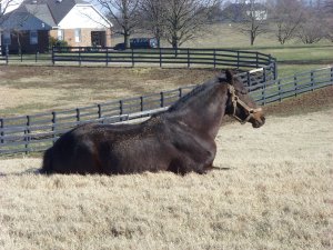 I really like all of our retirees but each one of us at Old Friends develop special bonds with particular athletes…Diane loves Creator; Tom dotes on Swan’s Way, Beth adores Ogygian, Janet has a soft spot for Mighty Mecke and Fortunate Prospect, Mercer is partial to Awad and Kudos and Ruthann loves Popcorn Deelites and Special Ring. Sylvia’s really attached to Bull inthe Heather. Wallenda gave his favorite human, Val a Christmas gift. And I had two: Sunshine Forever and Ruhlmann.