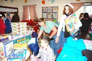 I had heard a lot about, and seen photos of, the Anna House holiday party at which the children of the backstretch workers get to pick out gifts for their families, but nothing prepared me for the sight that greeted me when I showed up at my appointed hour of 12:30 on December 8th.