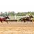 It was a beautiful day, and after the first few races, we decided to wander up the stretch. Unlike at many tracks, the part of the apron open to the public ends at about the sixteenth pole; undeterred, we walked up along the rail until the half-mile pole, about midway around the turn, where we watched one race before heading back. Great view of the clubhouse/grandstand, and it was cool to see the horses rounding the turn: quiet jockeys, so we heard only the pounding of hooves (and the crowing of a nearby rooster).