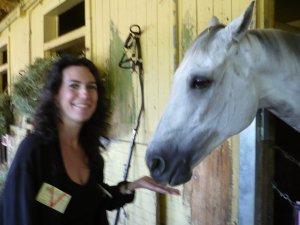 Then we visited Pat Kelly’s barn, where I got to pet Evening Attire. I was maybe as excited about this as Post Parade was about her photo with Bob Baffert…