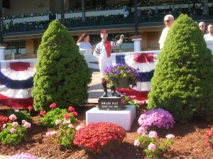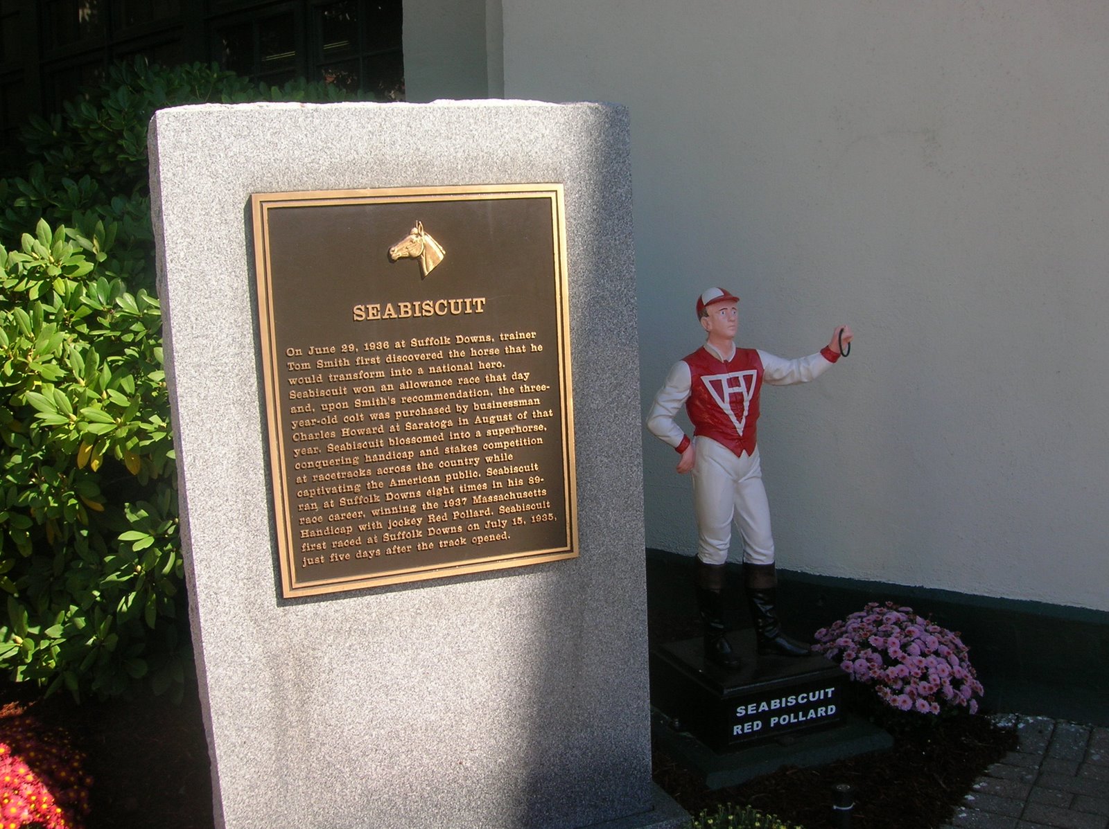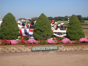 There are few tracks I’ve visited that I don’t like; mostly, if a track seems to be trying, it succeeds, and that’s certainly the case with Suffolk Downs. It looks great: entrance, infield, paddock, and winner’s circle are all beautifully landscaped, and everywhere are touches redolent of Suffolk’s proud past, including Seabiscuit and Red Pollard mementos at the entrance; banners of past MassCap winners hanging from the ceiling; and, in the winner’s circle, the equivalent of the Travers statue in the paddock at Saratoga, honoring the previous year’s winner of the MassCap.