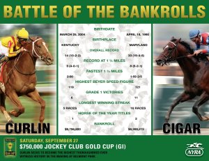 I find the second the more interesting, comparing as it does Curlin to Cigar, the horse whose lifetime earnings Curlin will overtake with a win this weekend: