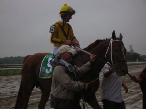 And the crowd was there not only to appreciate Curlin; they offered a loud and sustained ovation when the valiant Ginger Punch returned from being dueled into defeat by Cocoa Beach. There could be lots of excuses made for Ginger Punch—she didn’t like the slop; she didn’t want to be on the lead; she was coming off two tough races in the last two months, while Cocoa Beach had raced only once since last March—but she doesn’t need them. No shame in her defeat yesterday, though I wish that she’d won. Just look at her…
