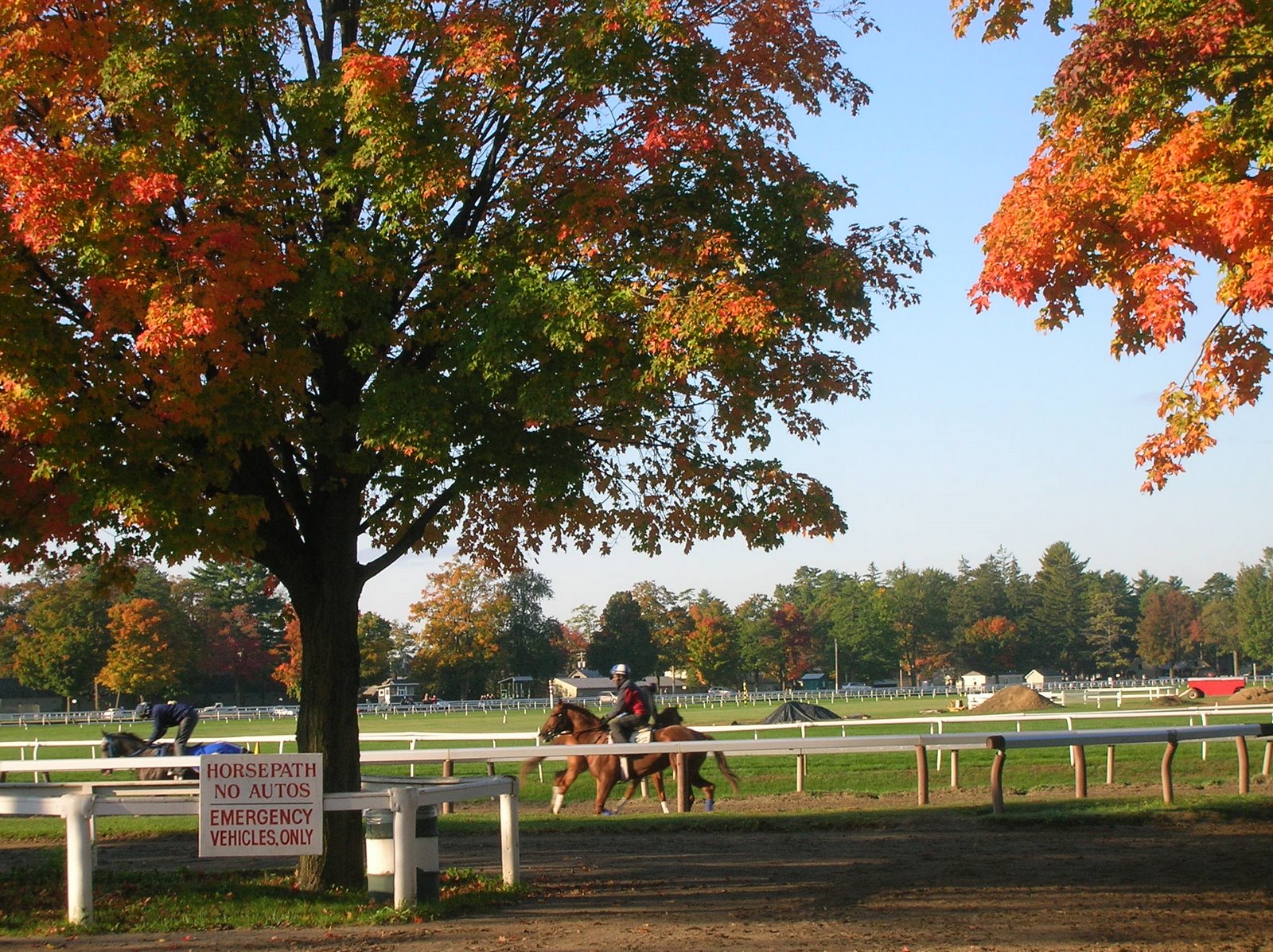 As I drove down East Avenue, I saw that people—jogging, walking their dogs—paused at the gates of the Oklahoma to watch as the horses exercised, to take pictures. The tourists and the races are long gone, but the Spa continues to compel, and even those who pass it every day stop to enjoy it, for one more morning, until it’s all gone, until next spring…