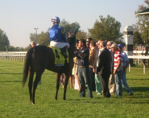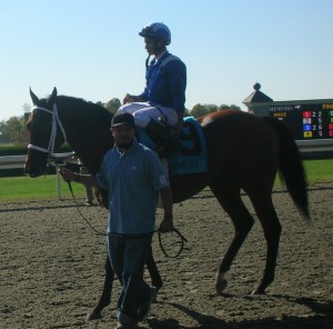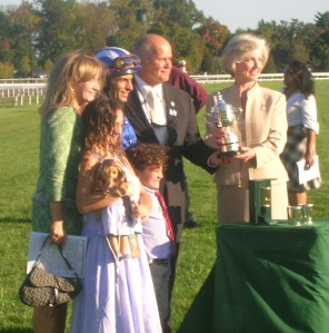 Michael Iavarone was on hand to watch his Ariege finish fifth in the feature; Kiaran McLaughlin was not in Lexington to saddle his two eventual winners. That honor went to his brother and assistant Neal, who apparently fills in fairly regularly for his brother in the winner’s circle, leading to a number of jokes at the trophy presentation about Kiaran’s absence being the guarantee of victory. I suppose Neal is the one who broke the news that Alwajeeha is off to the breeding shed; minutes after the race, Shadwell vice president Rick Nichols announced that the three-year-old filly will be retired. “She won a Grade I,” Nichols said. “We couldn’t ask any more of her.”
