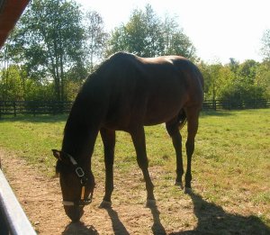 As Swain patiently and pleasantly posed for photos, Kent ran down his accomplishments on the track, and those of his relatives, worthy of a post in and of themselves. Fearing that we had already taken up too much of his time, we reluctantly bid farewell to Swain…but when Kent offered to show us some of the other stallions, we accepted with alacrity.