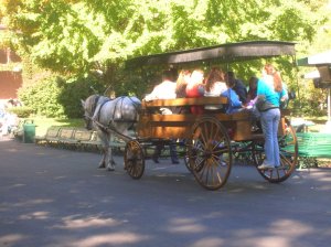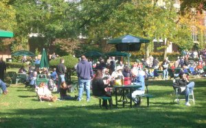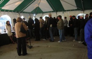 Wandering the backyard, I saw bundled up people (in the shade and the wind, it was pretty chilly) studying programs and watching races, and children lining up to carve pumpkins and get their faces painted. As I walked around, I needed to make sure that I didn’t get run over by the hayride, and to ward off the chill, I accepted the shot of Woodford Reserve bourbon being handed out at the tasting in the backyard tent, which attracted the longest lines of the day.