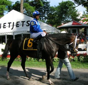 In very sad racing news, two-time Bernard Baruch winner Shakis was put down after suffering an injury during a workout at Hollywood Park. Here he is, on his way to the track at Saratoga in August, minutes before garnering his second Baruch victory.