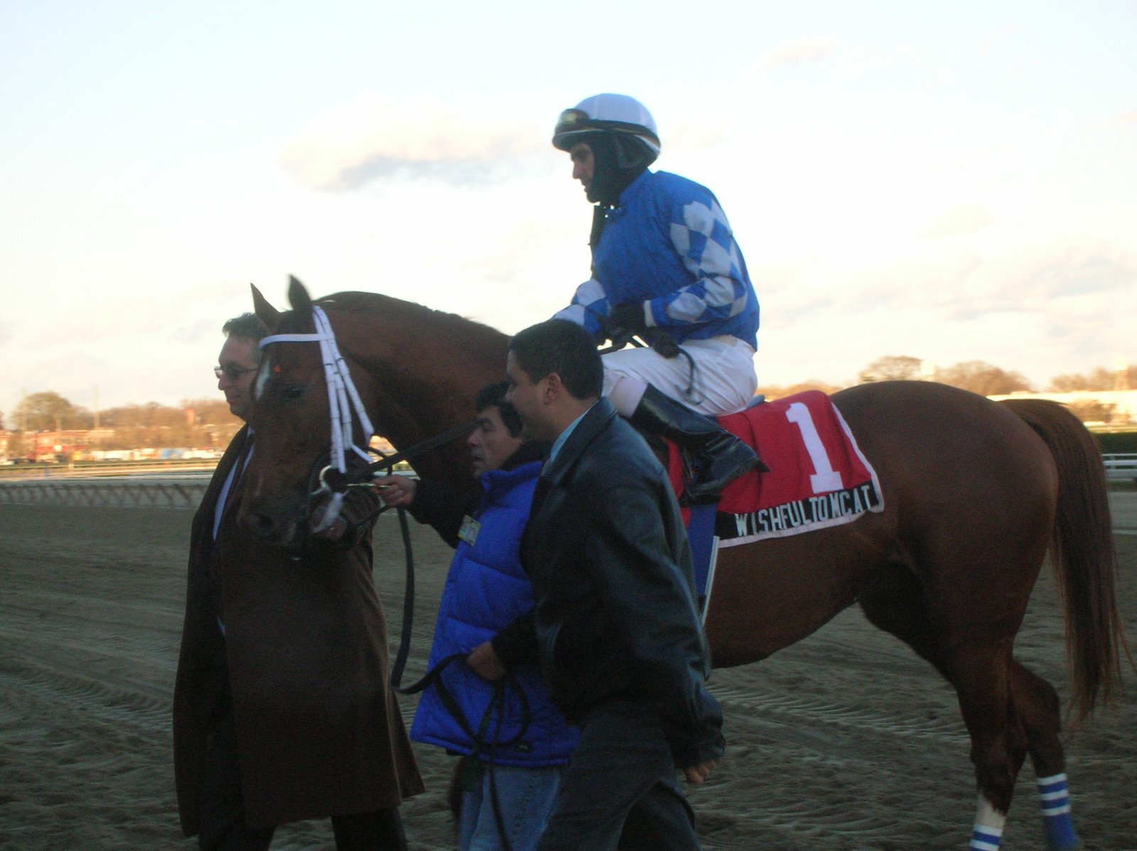 Wishful Tomcat runs his record to five wins in eleven starts, and those wins have come twice on the turf, once in the slop, once on a fast dirt track, and once on Aqueduct’s inner dirt track, over which he broke his maiden by seventeen lengths last December. It took Wishful Tomcat six starts to get to the winner’s circle, but once there, he obviously decided he liked it, as in his five starts since, he’s won four times. “He’s the kind of horse a trainer dreams of,” said Contessa.
