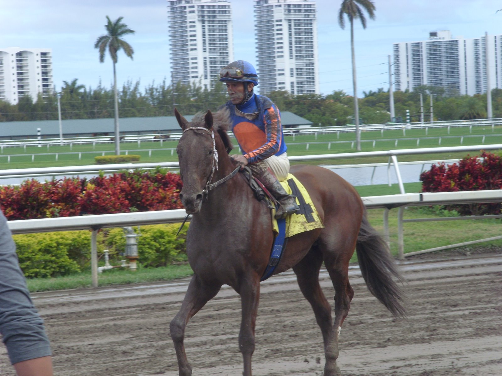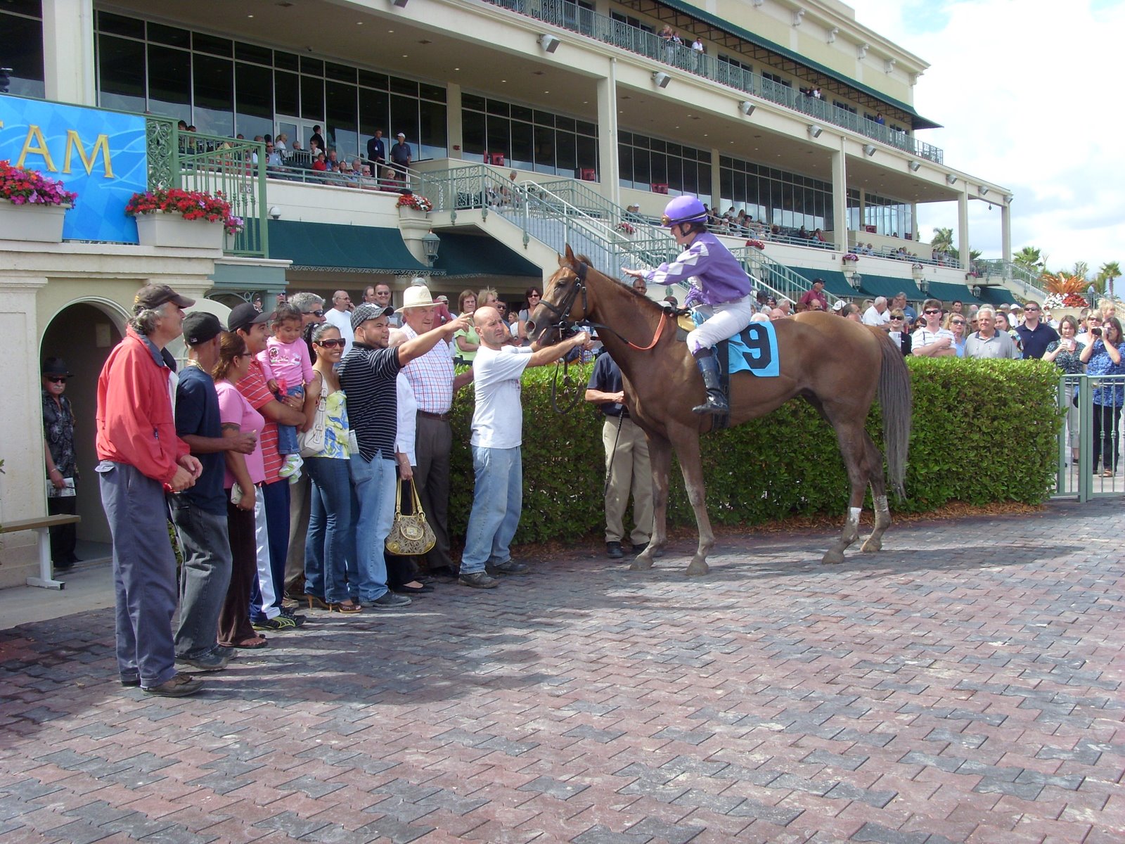 Now, keep in mind that my tastes have never run to the understated, so over-the-top architecture and tropical-inspired décor and colors are a plus for me, particularly after this winter of steel grays. The main entrance is obscured by the half-built retail elements of Gulfstream, which is a shame, but once inside the track (free admission and parking), visitors will find the place clean, comfortable, spacious, with attention to aesthetics and detail throughout. This guy looks good—but looks alone aren’t generally enough to keep my attention.