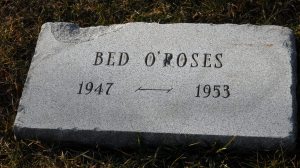 At four, Bed o’ Roses hit the board in eight of ten starts, and she won her first start at five, in the Santa Margarita. She was retired after only three starts that year and returned to Maryland to be bred the following year. She died before that could happen, in January of 1953, and she’s buried at Sagamore Farm in Maryland, home of the Vanderbilt horses.