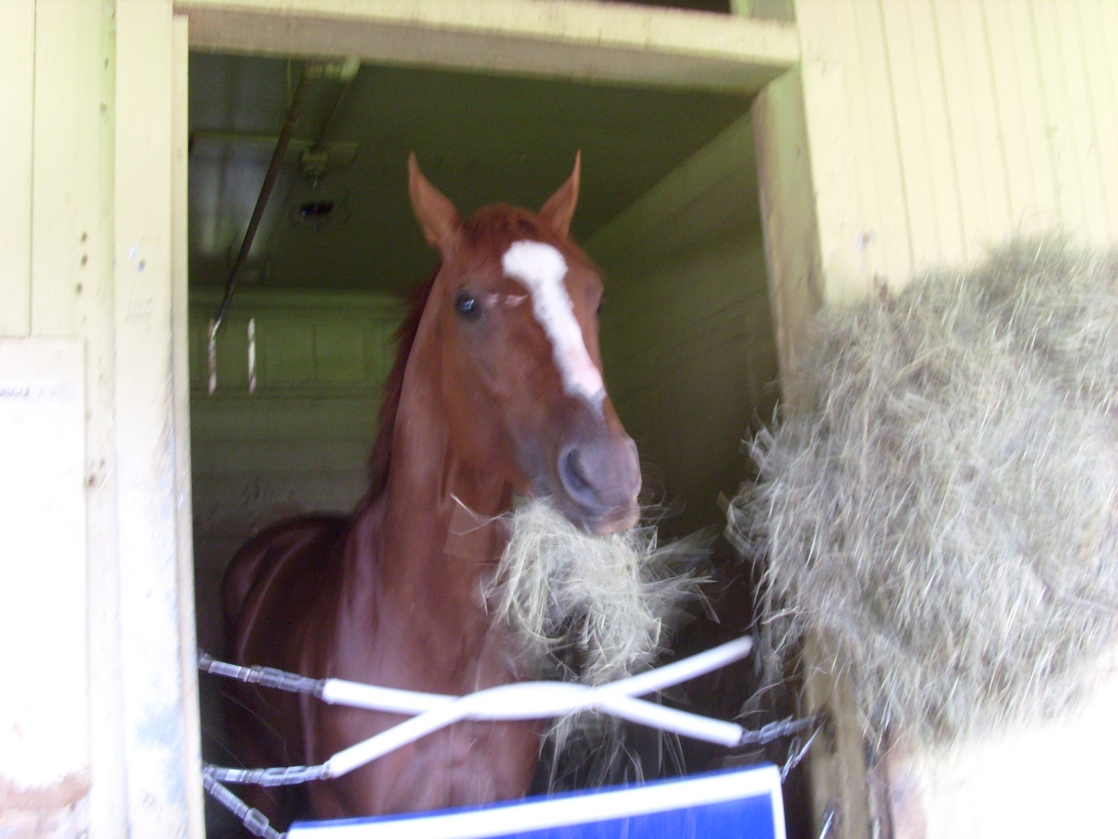 The day was filled with delightfully agreeable moments: getting good news about a New York favorite; eating lunch in the backyard, basking in the sunshine; visiting the backstretch in the afternoon and feeding peppermints to horses up and down the shedrow; meeting with up new and old racing friends (one of whose own posts about yesterday is a must-read); watching an exciting Grade I race…