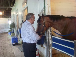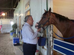Steve heads to the barns nearly every Sunday morning; he visits his horses and he helps Carroll feed. “It’s great therapy,” he declared. For many years, Saul came with him. He loved the Morning Line Café, the small cafeteria on the backstretch, and he loved that the people there knew him, remembering his order from visit to visit. Another Pont Street partner, Kathy Hammond, noted, “Saul knew everyone, knew the names of all the grooms. He had a great memory, and he loved being here.”
