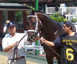 Despite the loss, Saratoga Russell’s owners and fans have reason to be encouraged: the colt experienced none of the breathing problems that have plagued him in the past; he finished the race full of energy; and back at the barn after the race, he was his usual playful and aggressive self. Andrew St. Lawrence, Kiaran McLaughlin’s Monmouth assistant, declared himself reasonably happy with the race, and hopeful about Saratoga Russell’s next start.