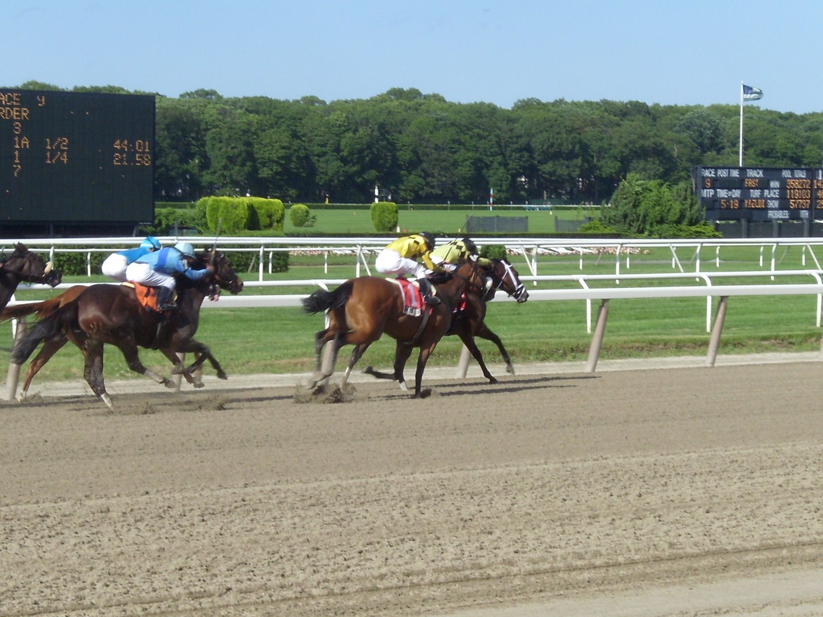 One of the great things about your blog is that you express true appreciation for a day at the races. Reading your posts is almost like being there. For my family, one of the GREAT treats of the year is to go to the beach and Belmont on the same day. A sandy beach and Big Sandy – – what a combo! It requires some logistical and meteorological luck, but we managed to pull it off last Friday. Robert Moses State Park from 10 – 2 and Belmont Park from 3 – 6. A brief late day downpour of Biblical proportions, viewed from high atop the third floor grandstand, only enhanced the fun.