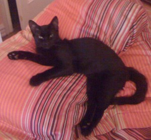 I’ve never been that crazy about having a cat named for a horse who died, famously, on the racetrack. I know, I know: I named her, it’s my fault. But she is so black and fast and inquisitive and intrepid and smart that from her tiniest kitten days, “Ruffian” has seemed nearly perfect for her. Except that her namesake died on the racetrack.