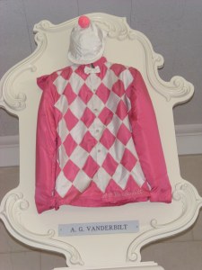 Teresa,What a fascinating trip back, both in time and in racing aesthetics. It was great!You happily refer to your visit to "Shangri-La"; I wonder if the word Camelot might also strike your fancy, for that is a very special place that has been asleep for far too long, for all the wrong reasons, just like Hialeah. And, conversely, maybe Hialeah should join that limited grouping of literature's ethereal beauties alongside the great ones.Really enjoyed the photograph-enlarging attribute you have now added: I don't remember it from previous postings.Your photo of Alfred Vanderbilt's silks draped upon a Hialeah chair remind me that I have not seen his cap festooned with a cerise pompon before — what a kick!Outstanding photos of the flamingos, and super video of their flight! Your talents are many.I guess that I am left with the musical memory of Broadway's spectacular Camelot, which ran contemporaneously with breautiful Hialeah in 1960; and the lyrical thought so well expressed in that theatrical treasure… "In short, there simply is not, a more congenial spot, for happily-ever-aftering, than here in HIALEAH!Sincerely hope you will be able to return to both Calder and Hialeah next year!