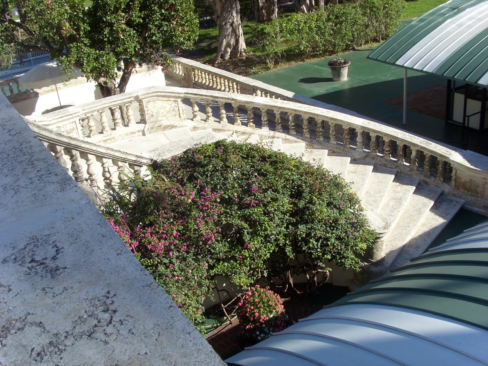 The grandstand, damaged by Hurricane Wilma in 2005, is closed, but the bougainvillea, even if faded, drapes it majestically; here, aesthetics have to substitute for utility.