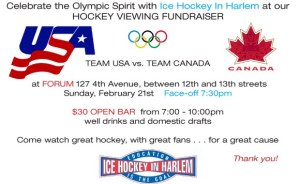 Local hockey fans might be interested to hear that Ice Hockey in Harlem, an organization with which I used to volunteer, is taking the opportunity of Olympic hockey to hold a fundraiser. On Sunday, February 21st, come to Forum (4th Avenue between 12th and 13th) to watch the United States and Canada square off. Cover is $30 for a limited open bar (well drinks and domestic drafts). Ice Hockey in Harlem teaches children to play hockey and offers a coordinating after-school education program—all at no cost to the children’s families. Students can begin in the program at age six and continue through high school. So come lift a few for a good cause, and watch what will be the premier match up in these Winter Olympics.