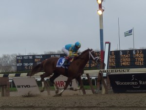 The Wood Memorial was a less competitive affair than had been anticipated. Awesome Act, the Gotham winner, broke badly and lost a shoe, finishing third; while Jackson Bend hung on gamely, winner Eskendereya was in another zip code when the Zito trainee crossed the wire in second place. Much to the delight of fans who came prepared, Eskendereya was a ten-length winner of the 86th Wood Memorial and emerged from the race the likely favorite for the Kentucky Derby. You can read my recap of the race in the Saratogian.