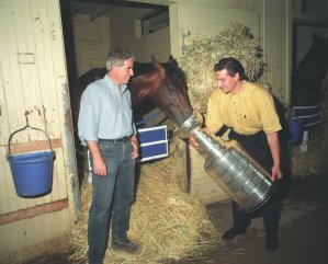 Growing up in the Chicago area, Olczyk started going to the track and betting on horses when he was a teenager; as a professional hockey player, he continued to follow racing and branched out from betting to ownership, and when his day with the Cup came in the summer of ’94, he headed to Belmont Park, to share the Cup with fans and raise money for backstretch charities.