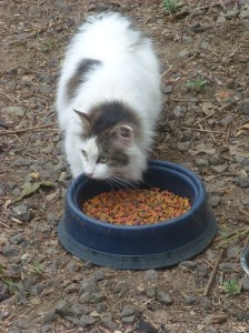 “We take care of the sick ones,” she said, “and if we can, we find homes for the ones who can live inside.” She works with local vets, and not uncommonly, she’ll bring to her home the cats who need recovery or recuperation time. If they’re domestic enough, she finds homes for them.