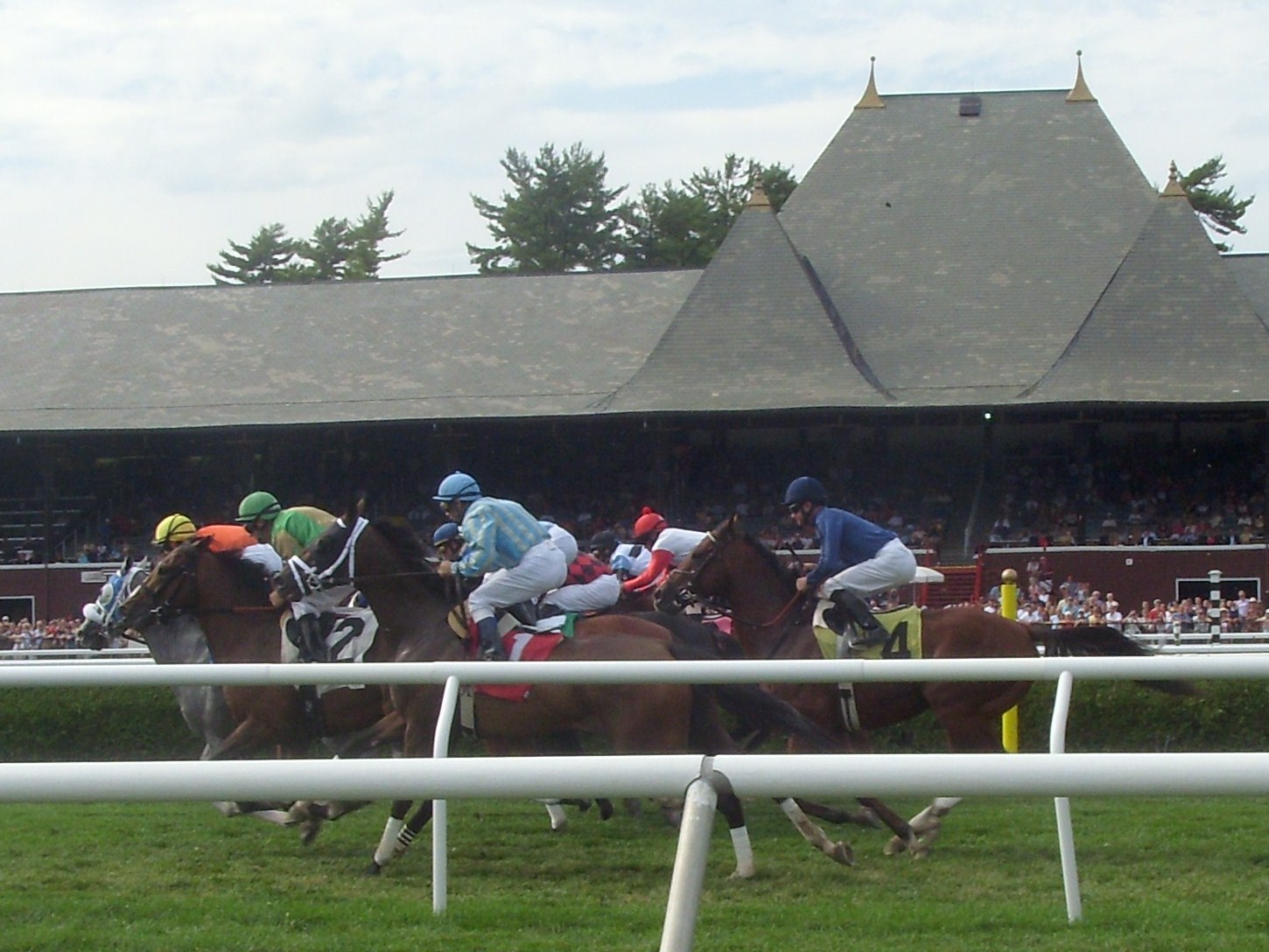 The start is “good for all,” though Highlight–#4–hesitates. They disappear around the clubhouse turn.