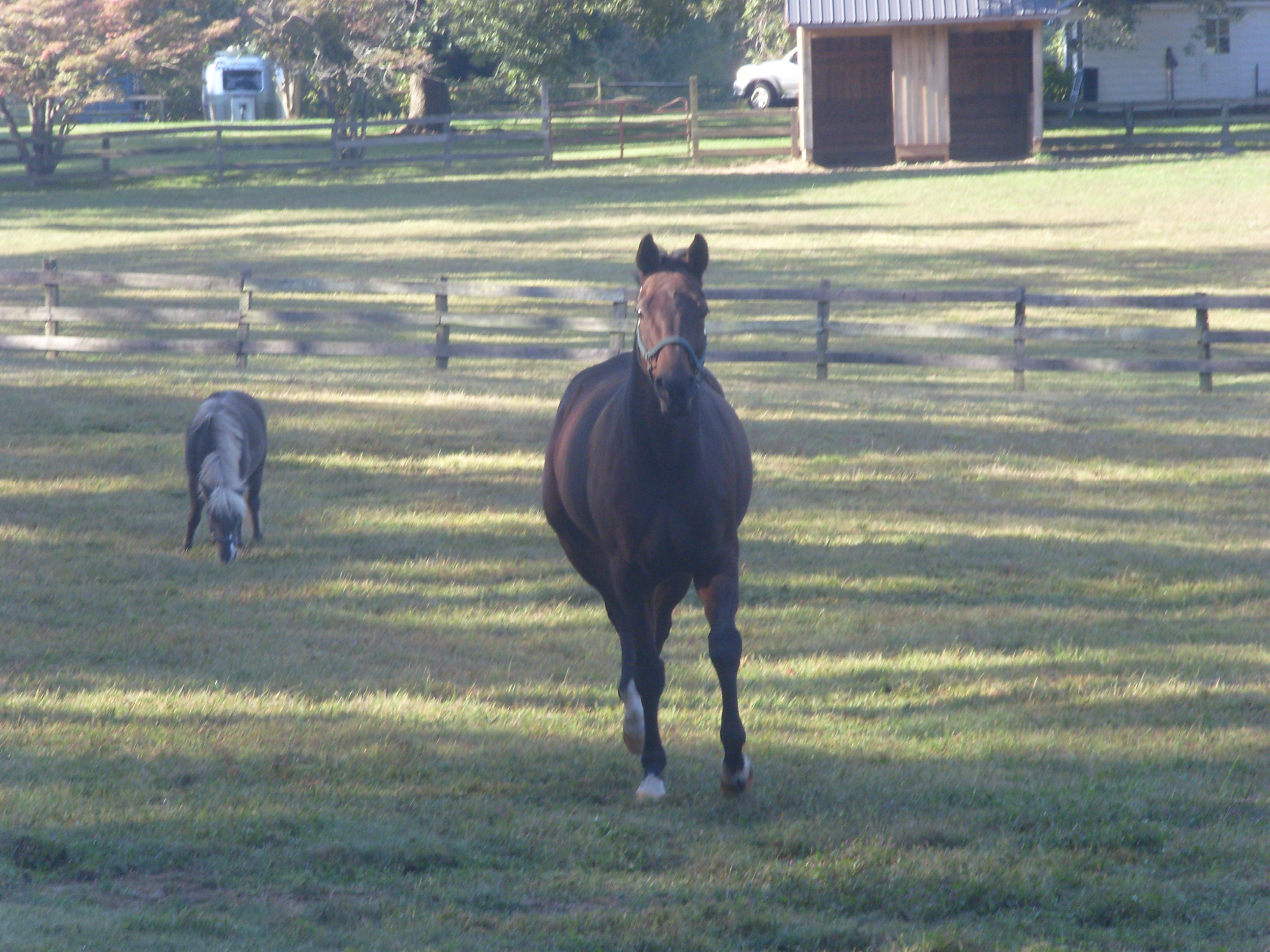 And what a home it is. Across the road from the house, a retired Warmblood named Baise shares a paddock with Older But Smarter, who raced 42 times with nine wins and earnings of more than $300,000.  Out behind the house, Hunt The Fox, a veteran of 60 starts with just four wins, hangs out with Wilma June, who by her fourth start had made it clear that she didn’t really want to be a racehorse.  Her career earnings? $69.