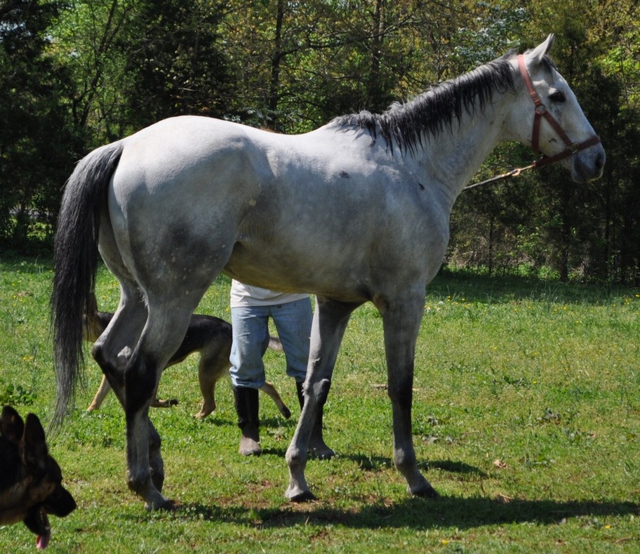 Morine’s Victory arrived at Blue Ridge Lane on Easter Sunday. Marshall saw him advertised on an auction site, and without seeing him in person, determined to bring him to her farm. “Someone had posted on Facebook about him,” she said. “He was in a kill pen for $300. I needed another horse like I need a hole in the head, but as soon as I saw him, I knew I was getting him.
