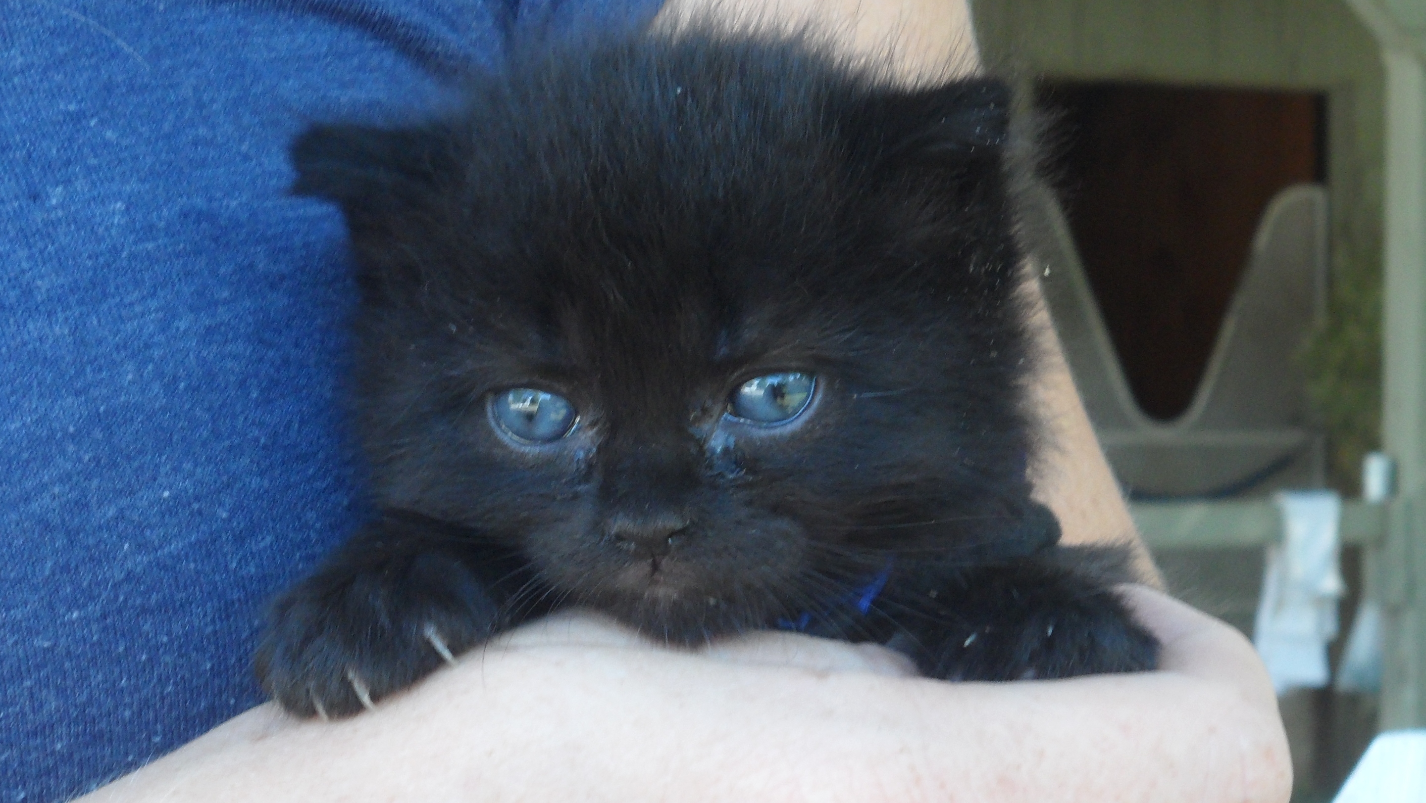 “She” is the tiniest, littlest black ball of fuzz. “She” is a kitten.