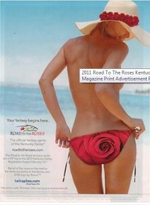 OK, back to the woman pulling off her bikini to promote racing… That ad has guaranteed that I will never sign up for twinspires.com (oddly, on their website, they proudly boast of their “integrity,” while showing a non-sexy woman with a big, festive hat, staring at an American flag).