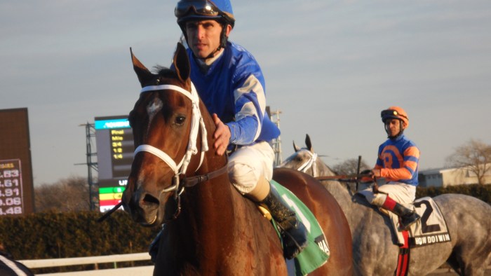 January 7 at Aqueduct felt more like April. It wasn’t just the weather, though I have never  been warmer at the Big A, not on any Wood Memorial day, not ever, than I was there on Saturday; “balmy” would be an understatement.