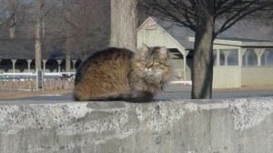 Jennings has been feeding the Oklahoma cats for two years; the front office manager at the Inn at Saratoga, she comes to the track on her way to or from work, and on her days off. She is the front-line volunteer in the joint effort of the New York Racing Association, the Moore Foundation, and Quaintance House to care for the Oklahoma’s feral cat colonies.
