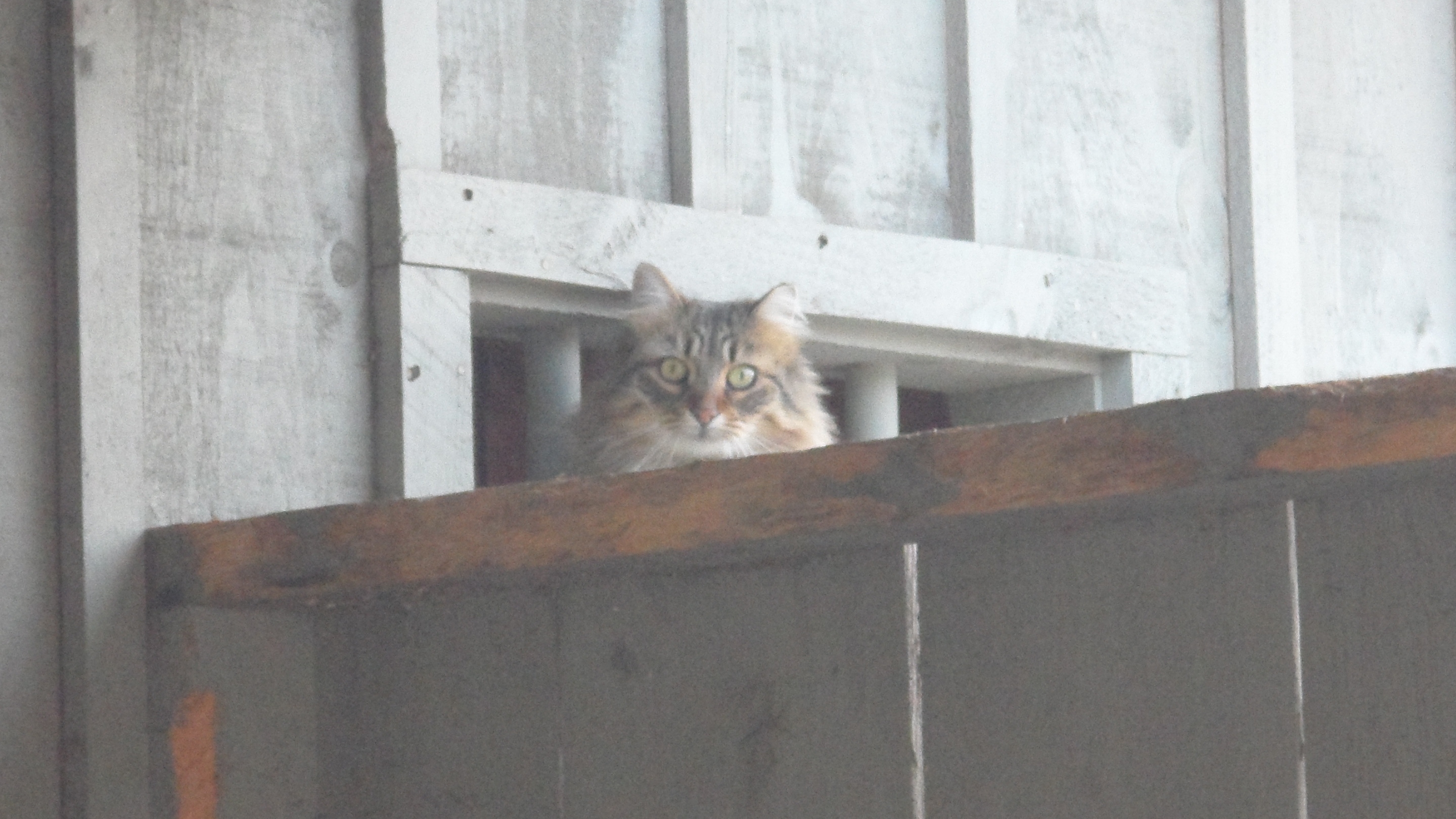 In the summer, when the Oklahoma is abuzz with activity, Jennings seldom sees the cats. They hide in haylofts and under buildings, and though she continues to feed them through the racing and “shoulder” (pre- and post-racing) seasons, they don’t require as much care then as they do when the Oklahoma is abandoned and the cold weather sets in. Their need for food after the racing operations have departed makes them more visible, and also easier to catch: it’s during the shoulder seasons that Jennings traps cats so that they can be neutered and returned to their colonies.