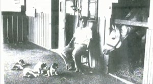 “There’s a really cool picture of Native Dancer and his groom; the groom is on a chair with a bunch of dogs around him, and Native Dancer has his head hanging out, leaning down, sniffing the dogs.”