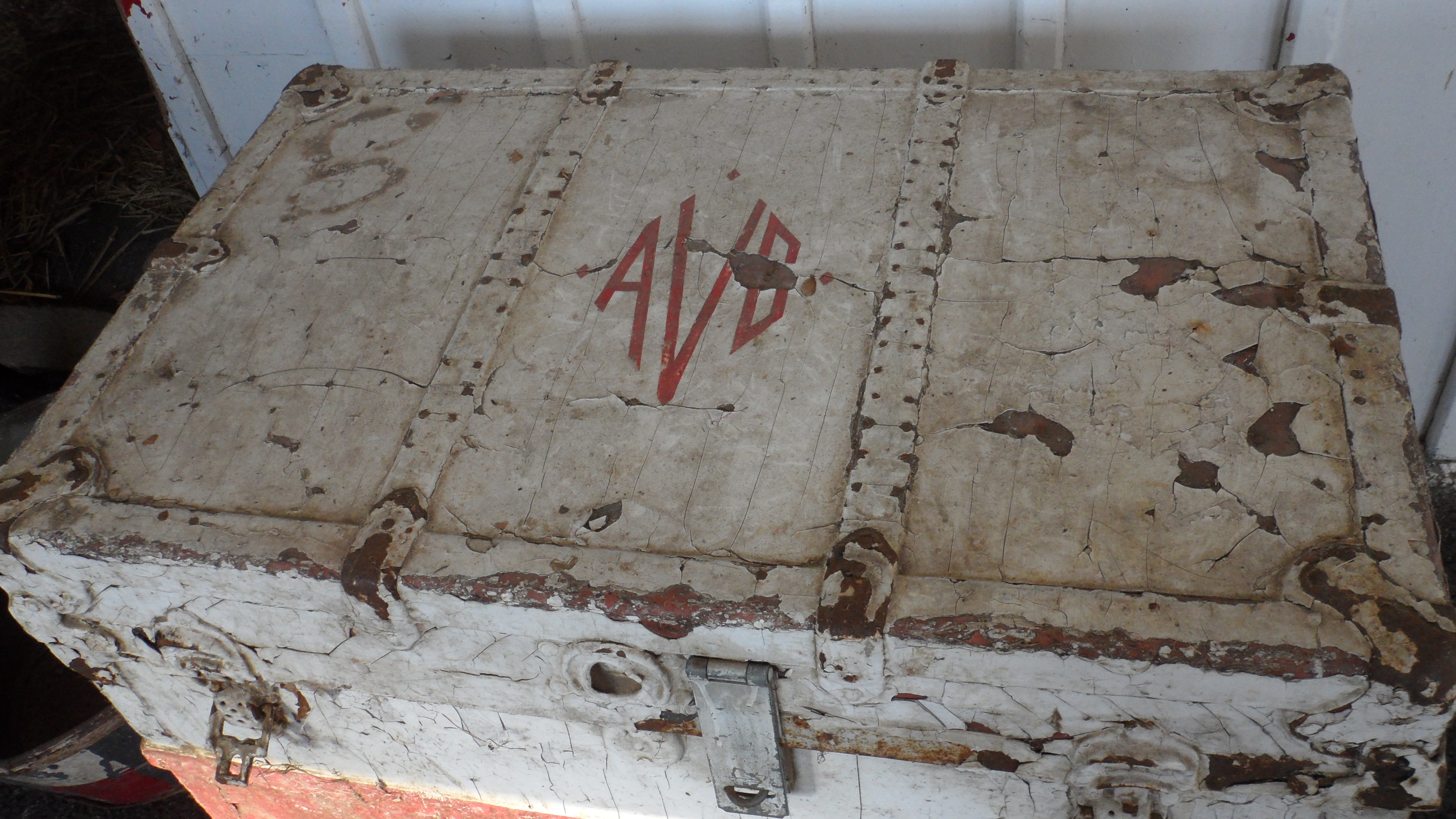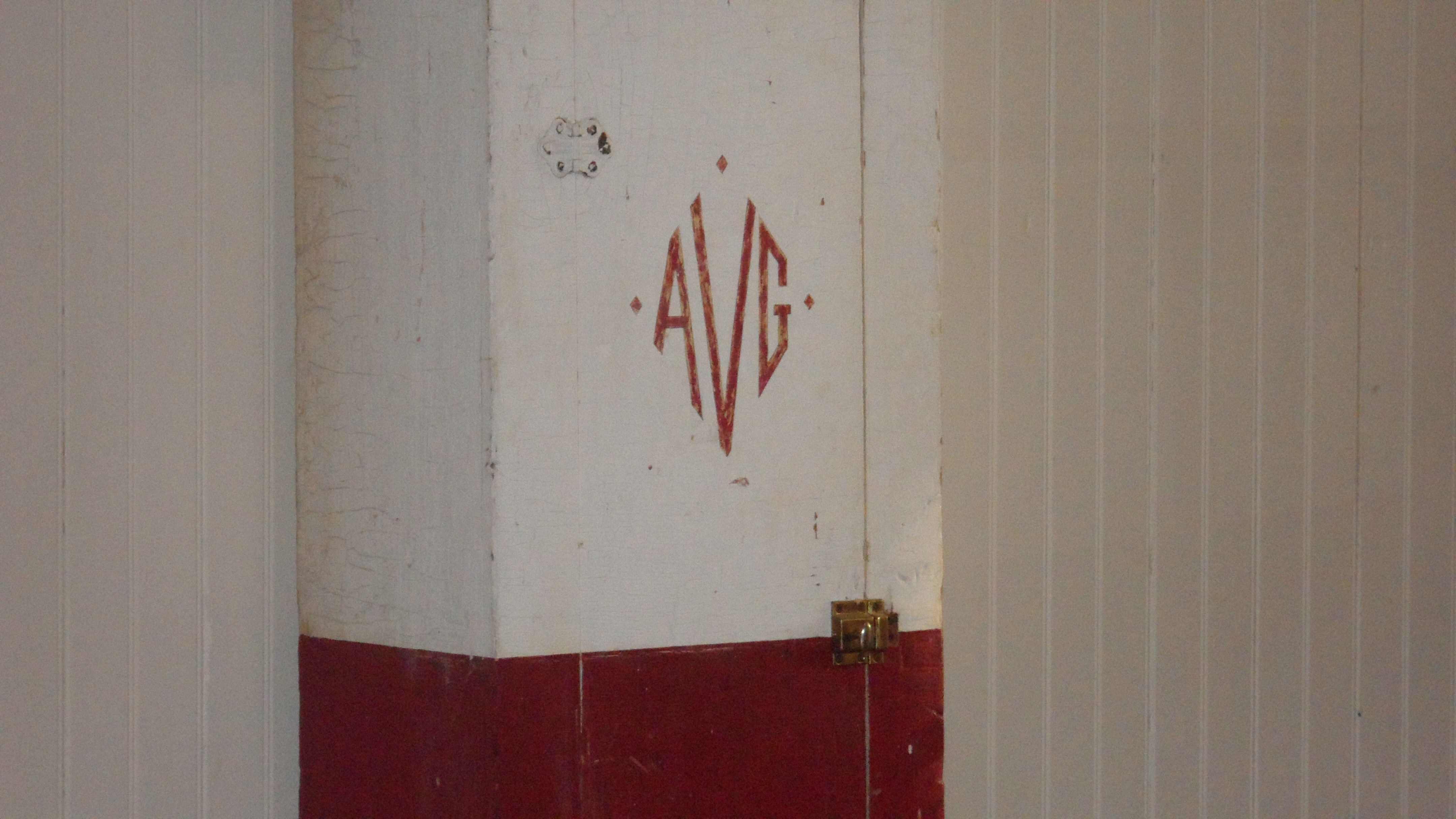 Down the hill, we walk into the old stallion barn, and there they are again, those initials. In perhaps his greatest understatement of the morning, Mullikin remarks, “This is a neat old tack box.”