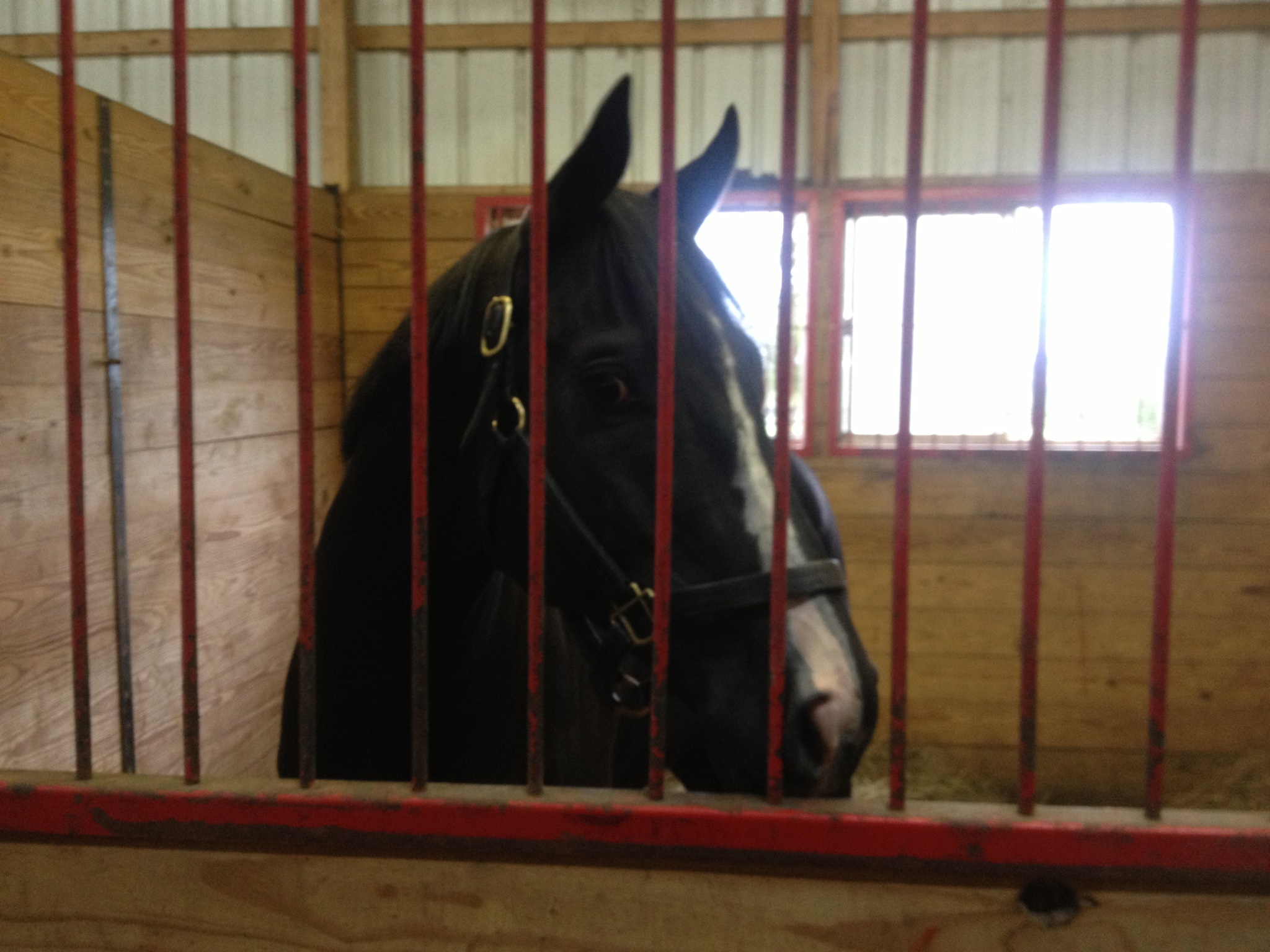 I’m not one for recognizing out-of-context equine faces, but that distinct, funny blaze, along with the sender’s name, clued even me in. But that wasn’t a Saratoga stall.
