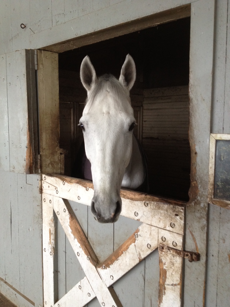 photo (16)This morning, Stud Muffin headed north from Belmont to Akindale Farm, where he’ll begin life as a retiree, joining another Evening Attire, Tacticianor, Hotstufanthensome, Callmetony, and Greeley’s Legacy among many others.  His path crossed briefly with Maggi Moss early in his career and more enduringly now, as she recently arranged to purchase Stud Muffin, using her own money and the contributions of some behind-the-scenes folks at TVG, Emily Shields of Simhorseracing.com, and an anonymous group of donors. Others who prefer to remain nameless stayed in regular touch with Stud Muffin’s connections, and when they decided the time had come to retire the horse, they worked quietly to make sure the transaction took place. None of the people who contributed had anything to do with Stud Muffin during his racing career.