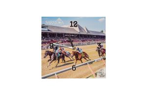 Giveaway #4, a Saratoga wall clock. Giveaways are free with paid admission while supplies last. Season pass and season ticket plan holders are guaranteed a Saratoga premium giveaway item on the day of the giveaway; they must be in attendance, enter through the designated season ticket and pass holder lines, and redeem the giveaway by 3 p.m. Redemptions will begin when gates open to the general public.