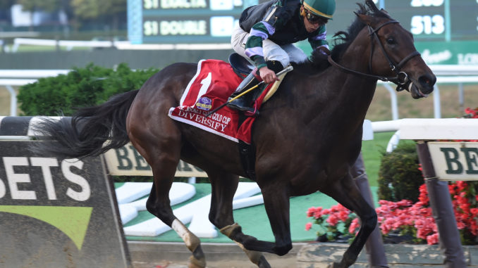 And dig in did the four-year-old son of Bellamy Road. Having led largely unchallenged for every step of the 10-furlong race after breaking from post 1, Diversify and Irad Ortiz Jr. had plenty left to hold off late bids by Pavel and Keen Ice to win by a length.