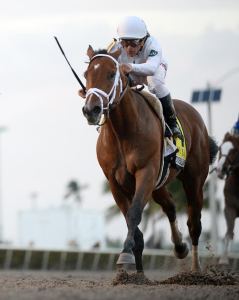 Strike Power & Luis Saez in the Swale at Gulfstream Park. Photo: Lauren King