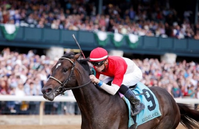 Bourbon Resolution and Chris Landeros winning the Grade 3 Ben Ali at Keeneland.