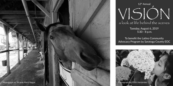 Visión: A look at life behind the scenes. Benefitting the Latino Community Advocacy Program of the Saratoga County EOC, this exhibit highlights the work of Latino photographers, featuring of their everyday life living and working in Saratoga Springs, including images from the racing season. 5:30 – 8pm at Saratoga Race Course. Tickets are $60 and be purchased here.