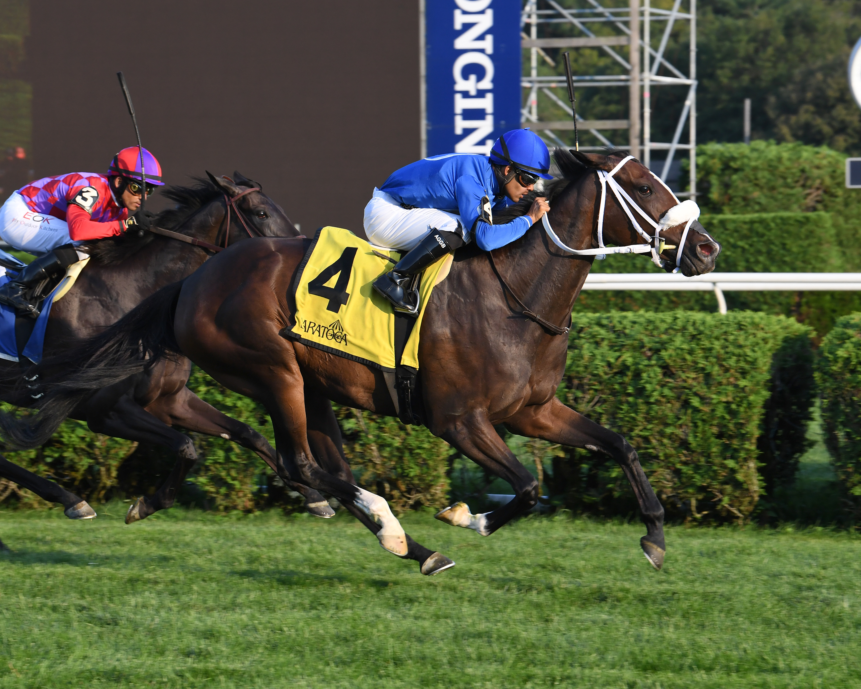 Turning in one of the most stirring performances on the day, Giacosa closed from last to win the $150,000 Yaddo States for trainer James Bond, who bred the filly as Song Hill Thoroughbreds; she is owned by the family’s Bond Racing Stable.