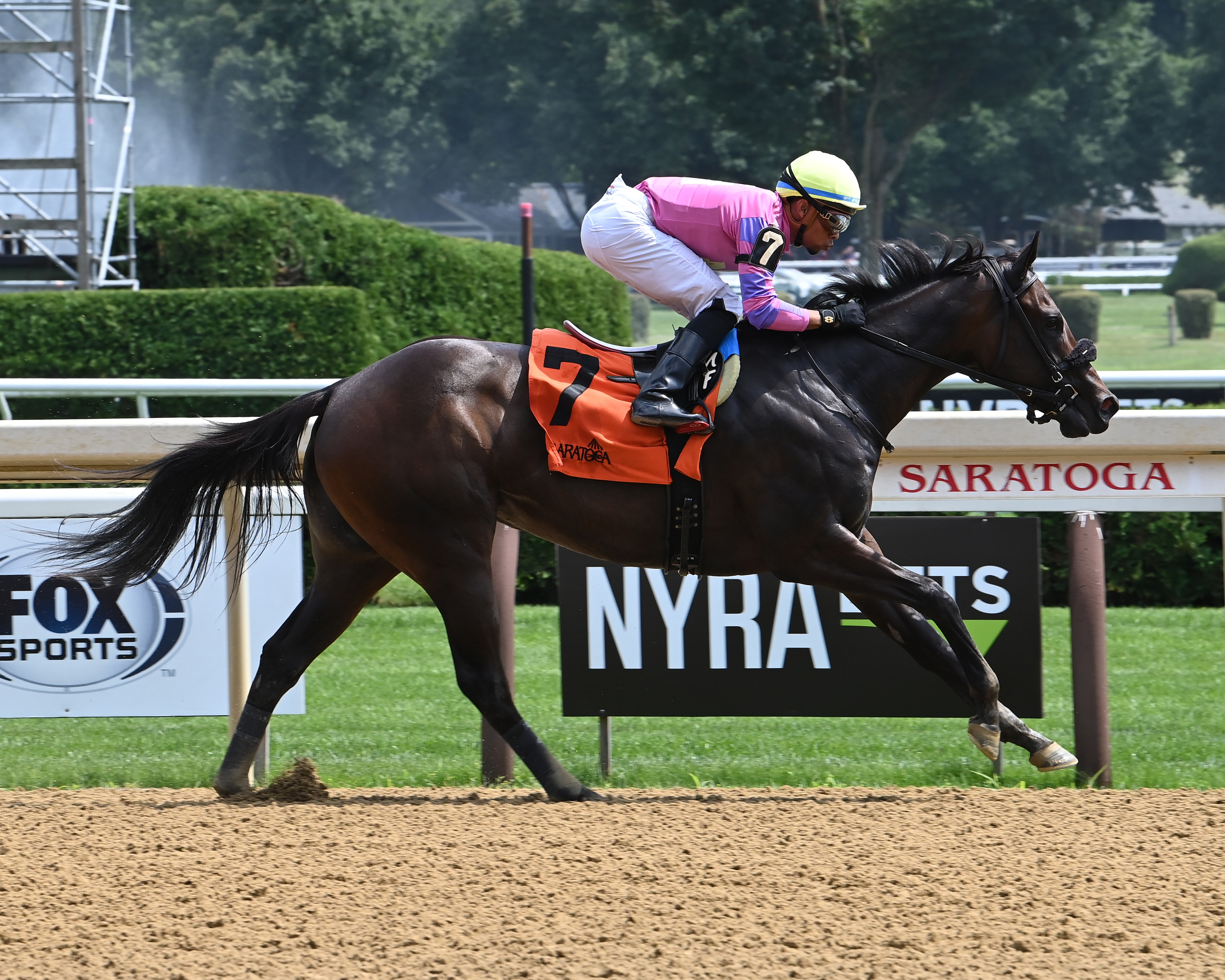 Her name presumably representing this side of her personality, Bellacose didn’t need to draw on any aggressive reserves to romp to victory in her debut at Saratoga Race Course. In a maiden special weight against seven other New York-bred fillies, Bellacose made short work of her rivals, going to the lead under Manny Franco and never letting her rivals get within less than a length of her. She hit the wire 10 3/4 lengths in front.