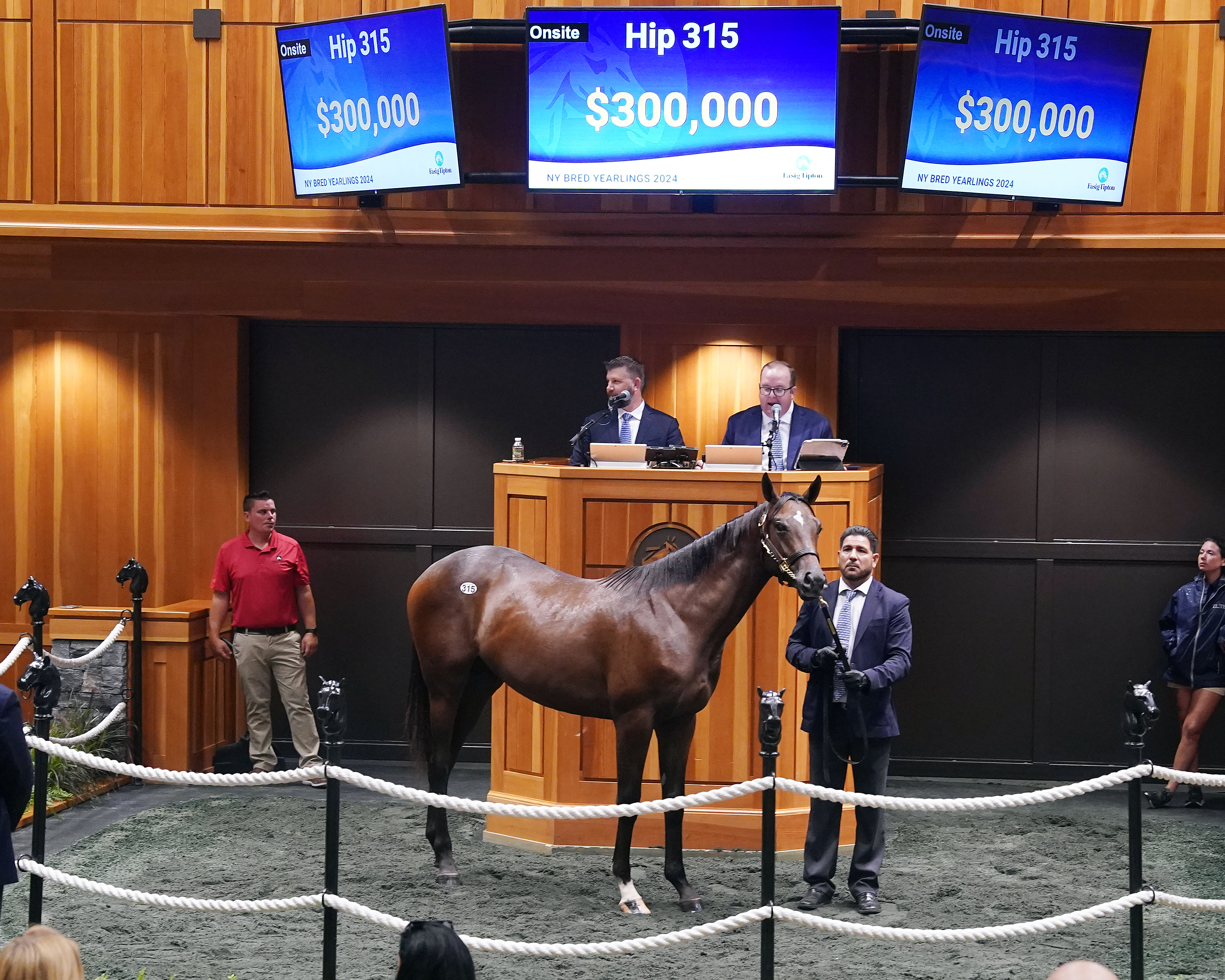 Hip 315 is a Constitution (Tapit) colt out of the Forestry mare See the Forest and sold for $300,000 to West Bloodstock, agent for Repole Stable. Consigned by ELiTe, agent, the colt was bred by Ten Strike Racing.